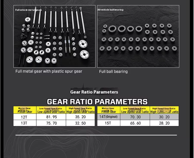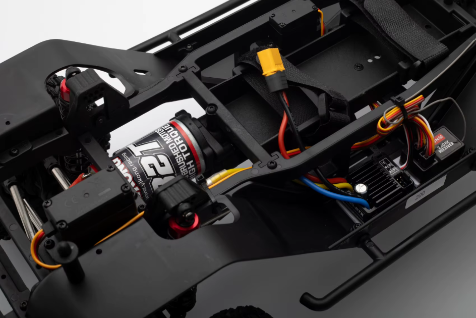 El YK41012 equipa un motor 32T, ideal para torque alto y control preciso en crawling. Proporciona aceleración suave y fuerza constante para superar obstáculos sin sacrificar estabilidad. El ESC Hobbywing 60A, compatible con baterías 3S, asegura una entrega de energía eficiente y segura en rutas exigentes. Su configuración está orientada al control más que a la velocidad, siendo perfecta para escaladas técnicas y maniobras precisas.