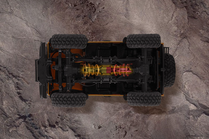 El sistema de suspensión independiente del FMS FCX24M Defender 90 está diseñado para adaptarse a superficies irregulares, absorbiendo impactos y manteniendo estabilidad en cada movimiento. Los amortiguadores proporcionan flexibilidad y un desempeño superior en maniobras exigentes. Su tracción 4WD maximiza el agarre en terrenos difíciles como tierra, rocas o pendientes, ofreciendo una experiencia de conducción realista y controlada. Su diseño compacto y robusto lo hace perfecto para practicar crawling en interiores o exteriores, manteniendo siempre un excelente desempeño.