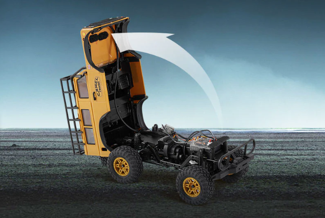 El Defender 90 FCX24M Camel Trophy incorpora un motor eléctrico de alto torque que le brinda la potencia necesaria para escalar y sortear obstáculos. Diseñado para el crawling, este motor se centra en ofrecer control y precisión más que velocidad, replicando la experiencia real de un todoterreno clásico. Su sistema de transmisión 4WD asegura que la energía se distribuya de manera uniforme, garantizando tracción constante. El control proporcional de acelerador y dirección permite maniobras suaves, haciendo de este modelo un crawler confiable y realista.