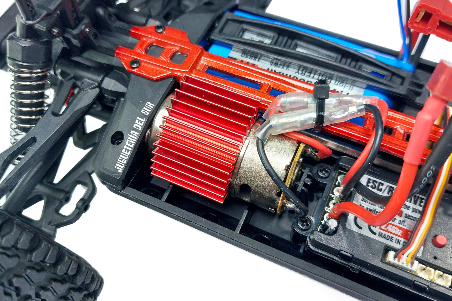 Equipado con un motor de escobillas 390, potente y eficiente, ofrece una velocidad de rotación de más de 21000 rpm. que proporciona una velocidad máxima de aproximadamente 40 km/h, proporcionando un rendimiento de alta velocidad y una aceleración impresionante.